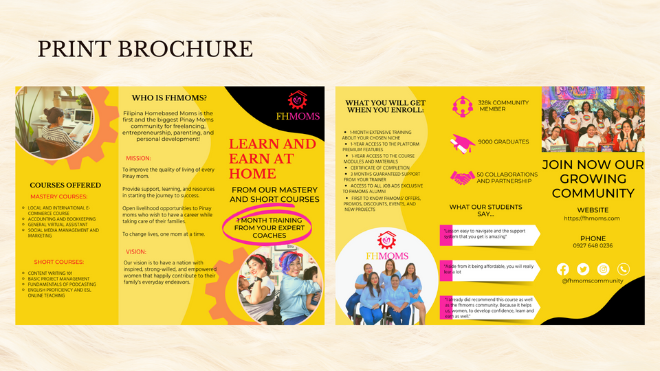 Filipina Homebased Moms is the first and the biggest Pinay Moms community for freelancing, entrepreneurship, parenting, and personal development!. They are a social enterprise that empowers home-based Filipina moms and mom figures to pursue their passion in freelancing, parenting, and entrepreneurship by providing an accessible e-learning platform and community that provides training, job opportunities and other support needed in their journey.